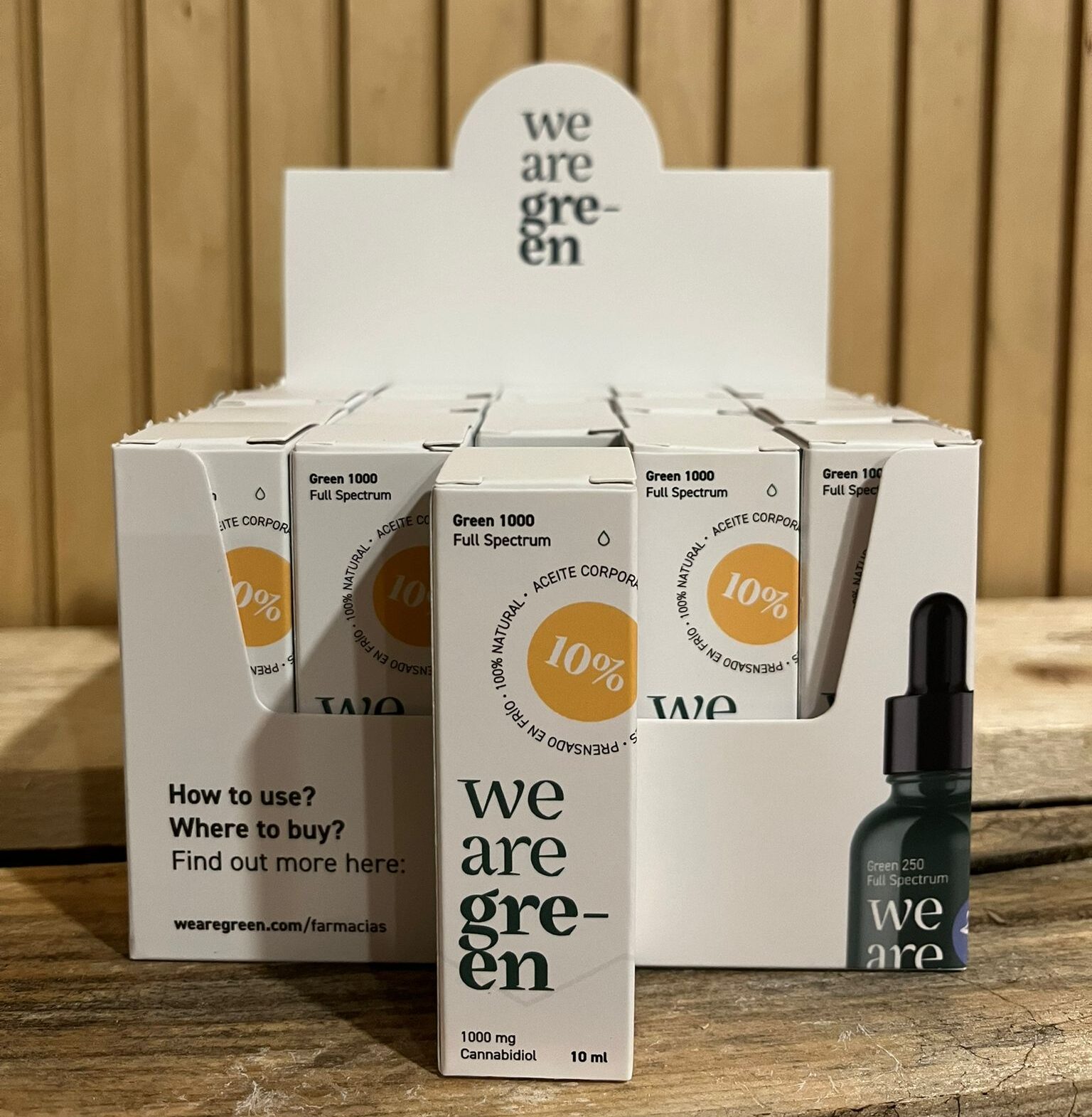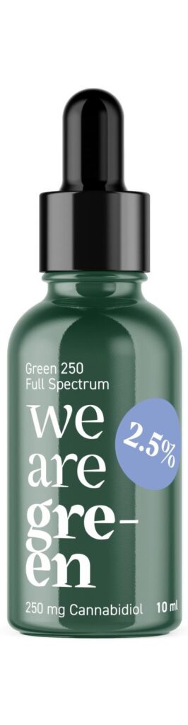 En nuestro país, WE ARE GREEN es, la única compañía en superar los requisitos exigidos por la Agencia Española Del Medicamento para la comercialización de aceites puros de CBD ( Código nacional reflejado en el anexo de sus cuatro presentaciones). garantizando la fiabilidad de su composición, tanto en los ingredientes reflejados, como en los porcentajes indicados, ausencia de excipientes, estabilidad de cada una de sus presentaciónes,etc.